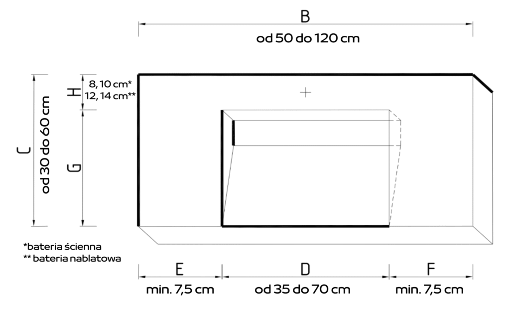 materiału wykończenia (gres, mikrocement, spiek, kamień naturalny i wiele innych),